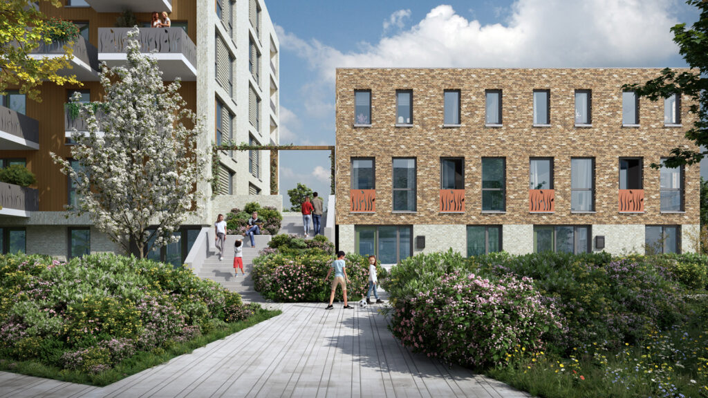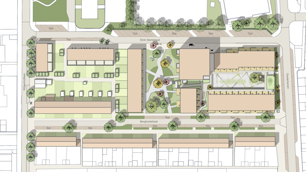 Ontwerp van de openbare ruimte en daktuinen voor “De Groene Tuinen” in Beverwijk. Het betreft 83 nieuwbouw woningen en de renovatie van 20 sociale huurwoningen voor WoonOpMaat, gelegen rond een nieuw parkje in het hart van het woonblok. Binnen het plan is er veel aandacht voor ecologie en de relatie tussen privé en openbaar.