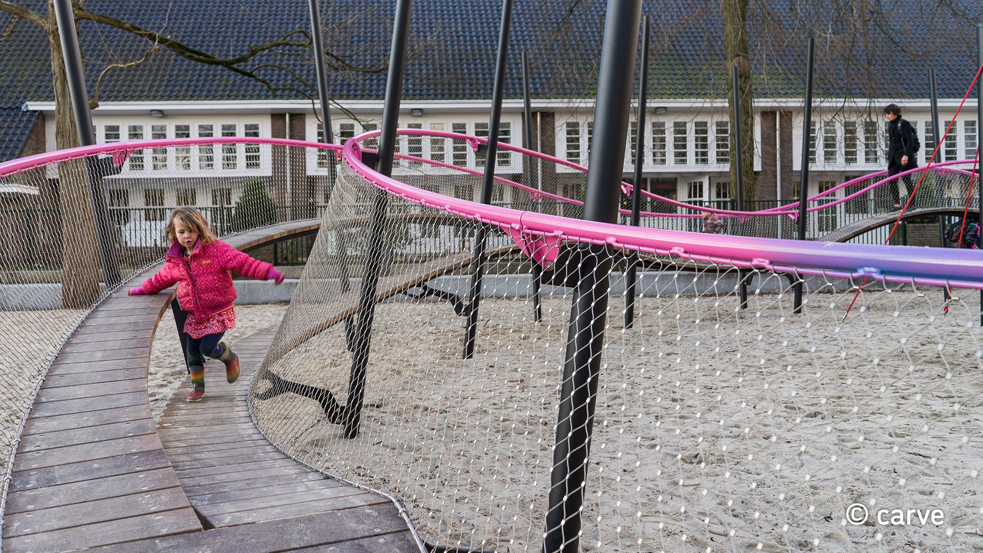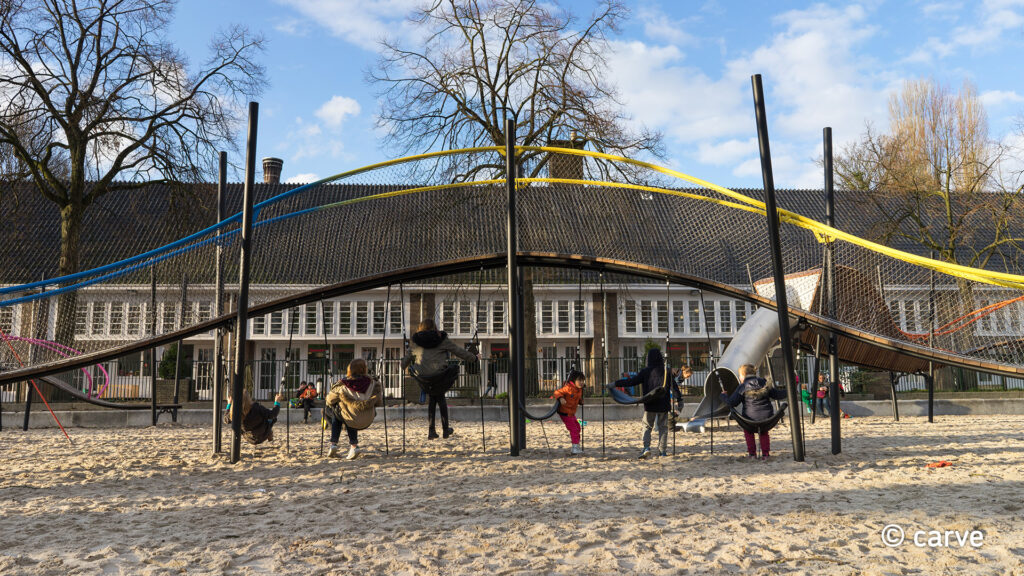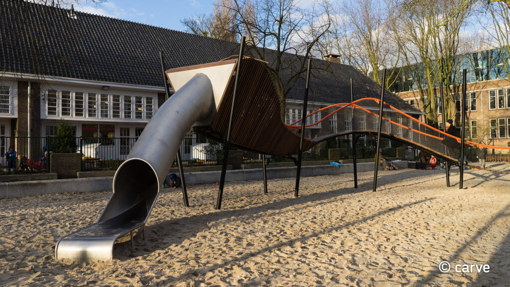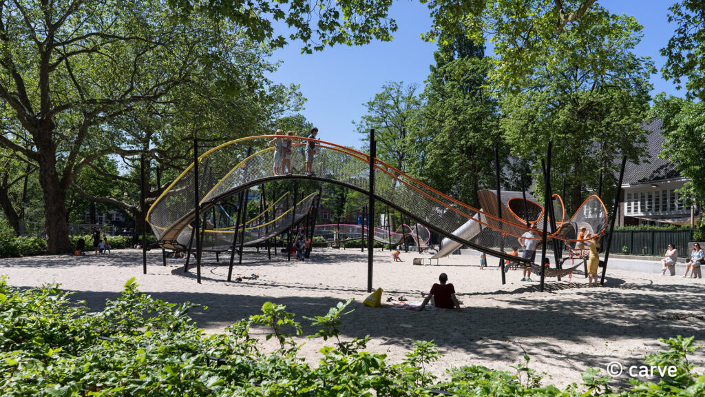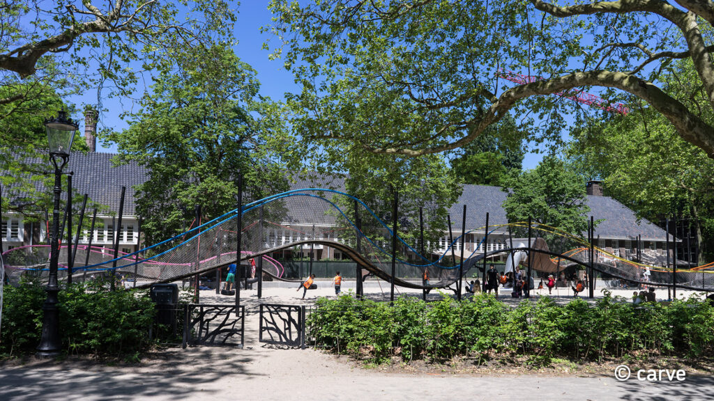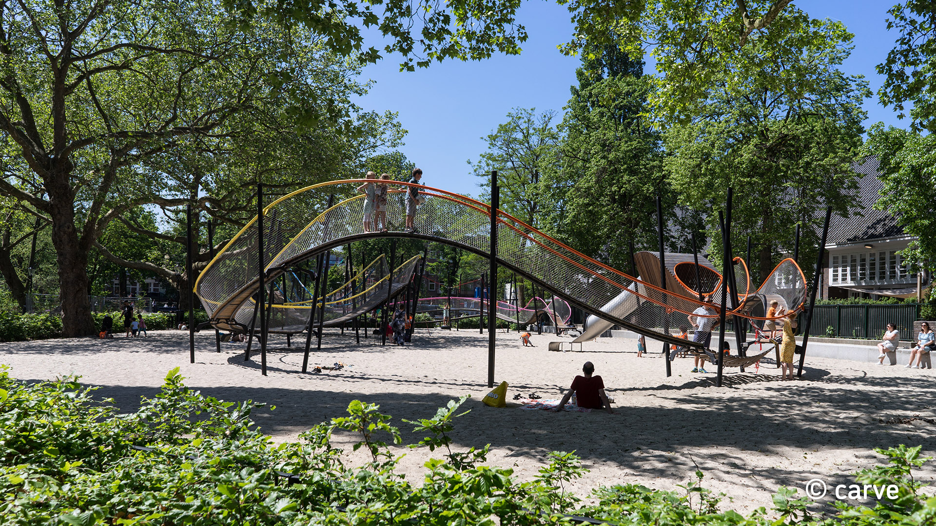 Op maat gemaakt speelobject ingepast in een monumentaal park in Amsterdam.